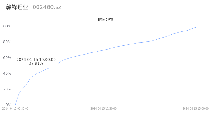 002460赣锋锂业2024年04月15日成交24.85万手,成交金额9.61亿元,相较昨日缩量1.75万手,换手率2.06%,成交清淡。