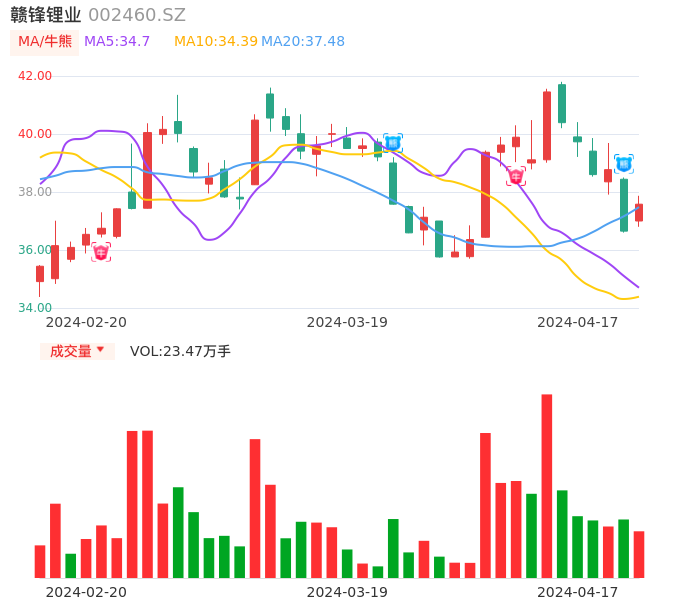 04月17日,赣锋锂业收报37.58,股价涨幅2.54%,成交金额8.76亿元,换手率1.94%。