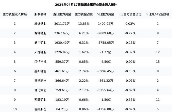 从主力资金流向来看,能源金属行业今日主力资金流入18.47亿元,在所有申万二级行业中排名:52/131。