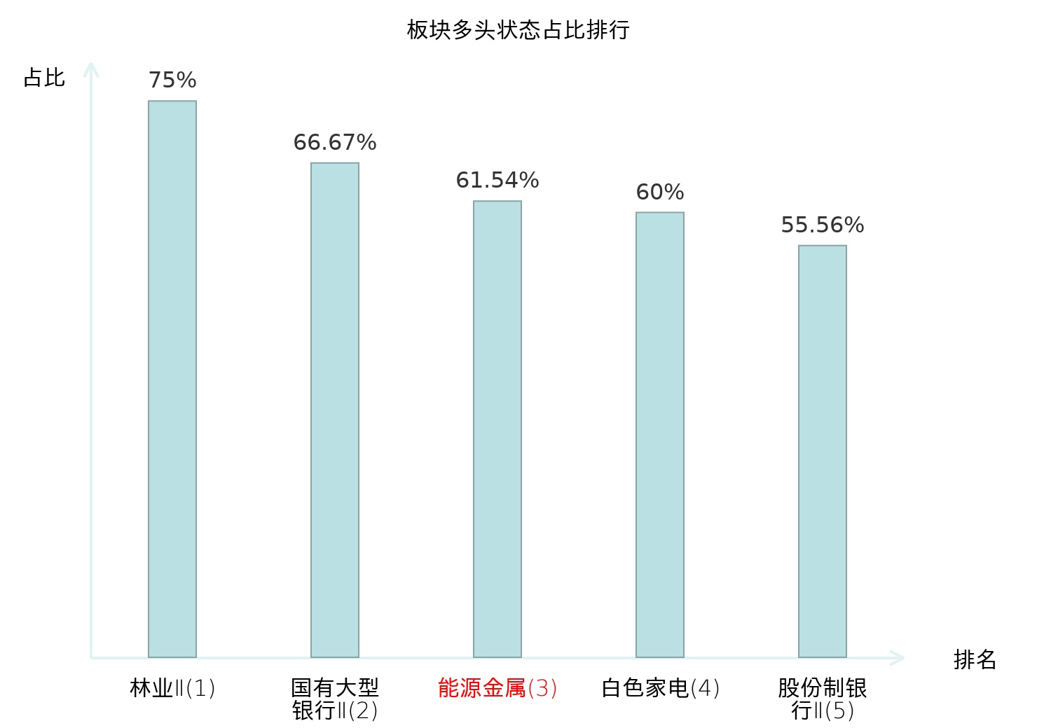 全市场所有行业板块中主力多头状态占比排名中,林业Ⅱ板块位居第一。数字媒体板块名次提升最快,较昨日上升48位。