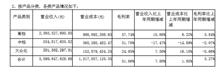 上半年,公司实现啤酒销量73.41万吨,同比增长5.10%。其中,高档啤酒产品销量的提升带动营收增长,公司高档啤酒营收为23.64亿元,营收占比约74%,同比增长15.86%。