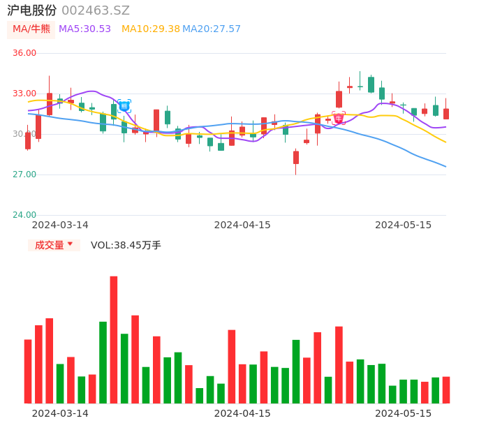 05月15日,沪电股份收报31.86,股价涨幅1.53%,成交金额12.35亿元,换手率2.01%。
