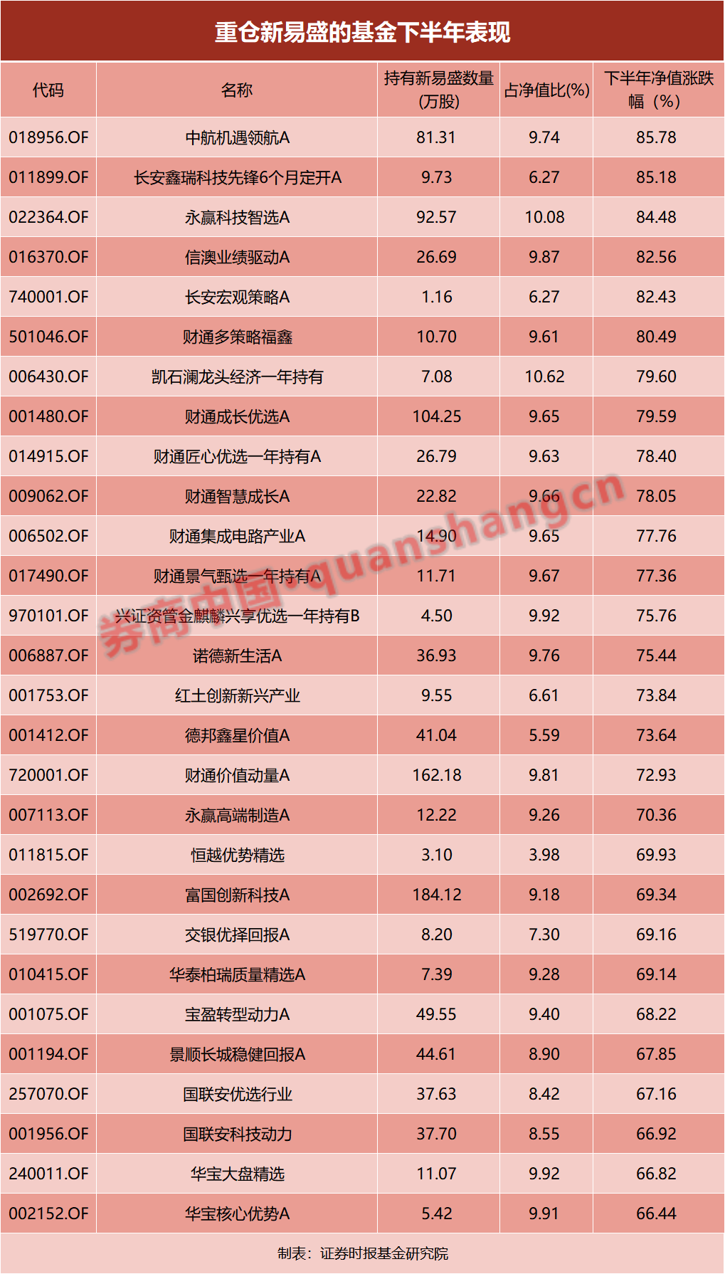 更重要的是,这批新抱团股贡献了惊人的超额收益,成为市场瞩目的焦点。证券时报基金研究院统计显示,主动基金半年报全部持仓前20大股票7月份以来平均回报达到42%,这些股票全年的平均回报更是高达103.8%,远远超过全市场各大主流指数同期表现。