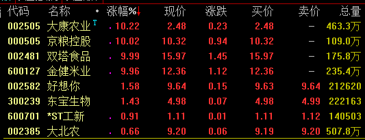 人造肉概念今日盘中再度走强,截至收盘,大康农业、京粮控股、双塔食品、金健米业等涨停。