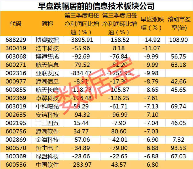 今日大跌的信息技术板块公司多数在上周五收盘后发布三季报,业绩表现不及预期显然让投资者选择了用脚投票。