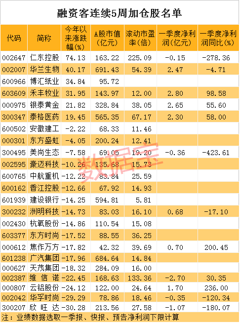 从业绩数据来看,上述融资客连续5周加仓股中,仅云铝股份、焦作万方、禾丰牧业、泰格医药、银泰黄金一季度有望同比增长,其中云铝股份净利润预计增幅最高,公司预计一季度净利润约1.7亿元,同比增长236%左右。
