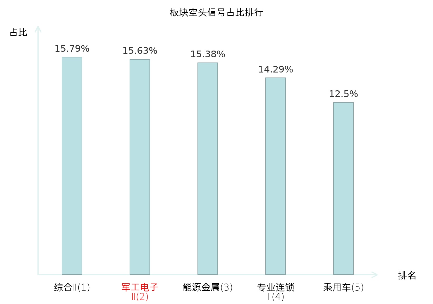 全市场所有行业板块中主力空头信号占比排名中,综合Ⅱ板块位居第一。证券Ⅱ板块名次提升最快,较昨日上升116位。