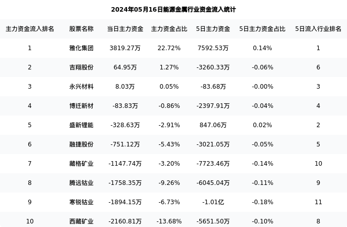 从主力资金流向来看,能源金属行业今日主力资金流入12.70亿元,在所有申万二级行业中排名:110/131。