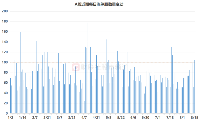 注:A股近期每日涨停股数量变动(截至8月15日数据)