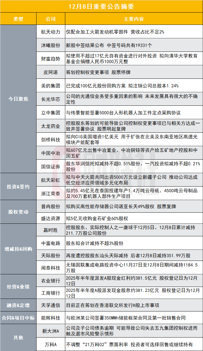 太龙药业(600222.SH)公告称,公司控股股东郑州泰容产业投资有限公司正在筹划的可能导致公司控制权变更的事项已与相关方达成一致并签署协议。公司股票将于2025年12月9日开市起复牌。该事项尚需履行必要的内部决策,并获得有权监管机构批准后方可正式实施。