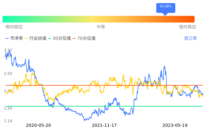 2023年05月19日,申通快递上涨3.44%收于10.53,今日成交金额1.80亿元。下文将从市盈率PETTM、市净率PB、市现率3个角度去分析公司估值情况。