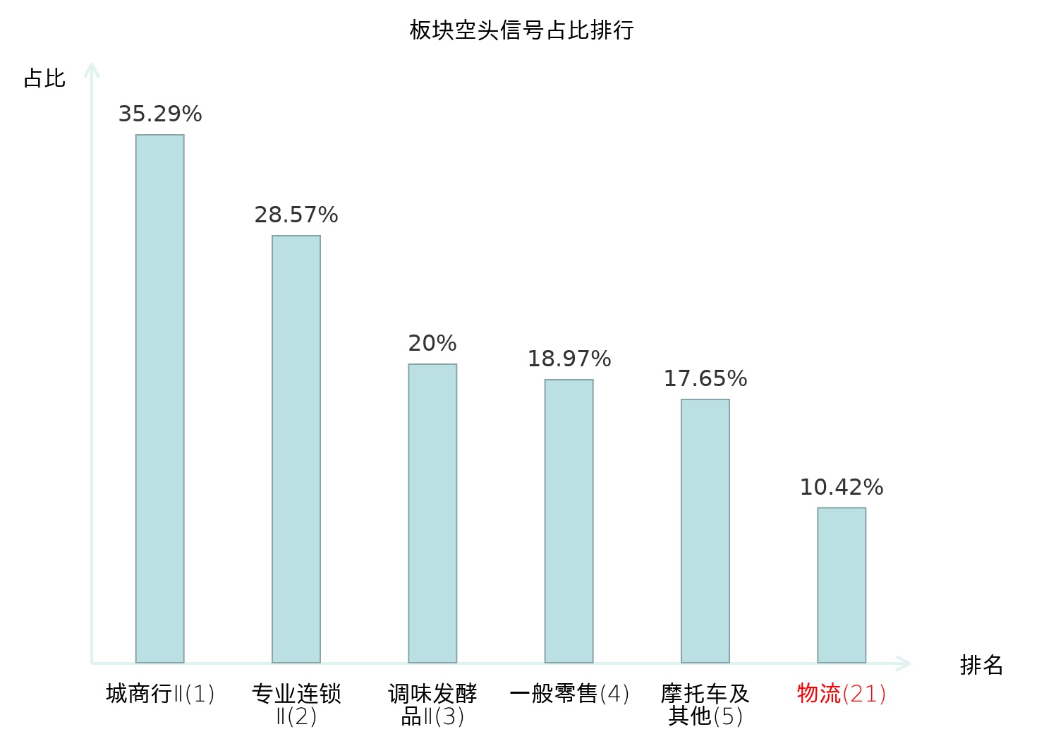 全市场所有行业板块中主力空头信号占比排名中,城商行Ⅱ板块位居第一。炼化及贸易板块名次提升最快,较昨日上升96位。
