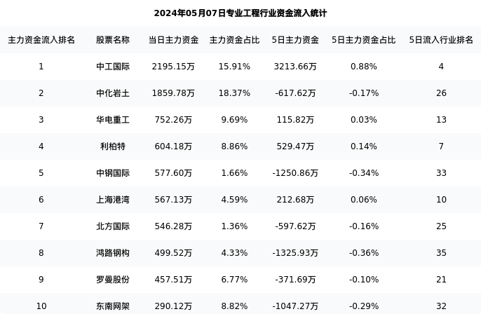 从主力资金流向来看,专业工程行业今日主力资金流入13.56亿元,在所有申万二级行业中排名:68/131。