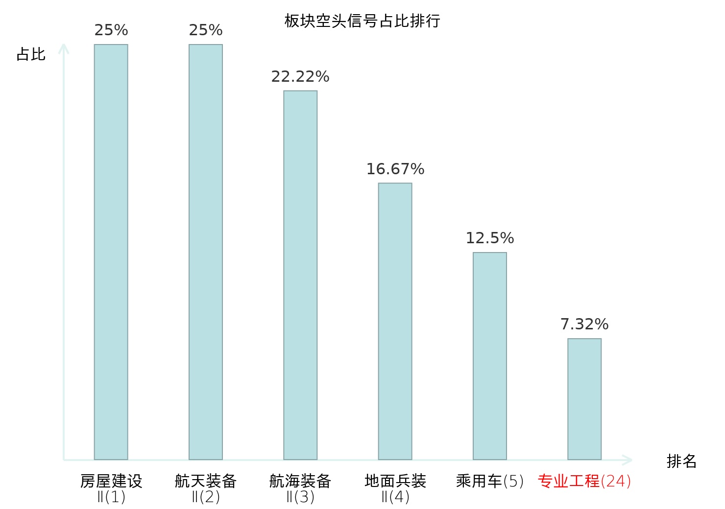 全市场所有行业板块中主力空头信号占比排名中,房屋建设Ⅱ板块位居第一。食品加工板块名次提升最快,较昨日上升110位。