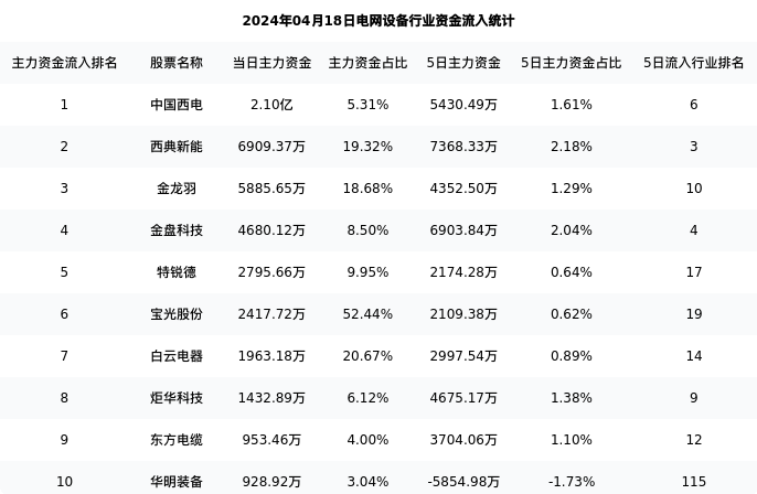 从主力资金流向来看,电网设备行业今日主力资金流入53.39亿元,在所有申万二级行业中排名:78/131。