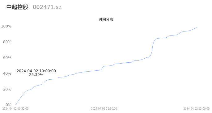 002471中超控股2024年04月02日成交40.49万手,成交金额1.16亿元,相较昨日放量11.87万手,换手率3.20%,成交清淡。