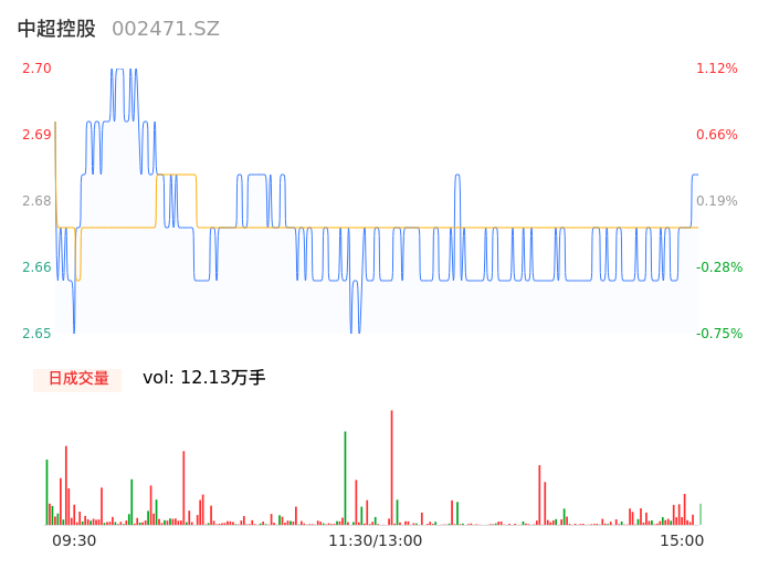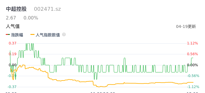 04月19日,中超控股收报2.67,股价涨幅0.00%,成交金额3237.03万元,换手率0.96%。
