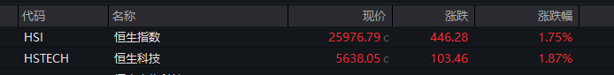 港股:截至收盘,恒指涨1.75%,恒生科技指数涨1.87%。