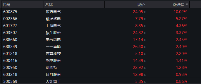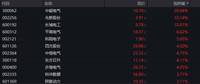 中国西电、中能电气、长城电工等涨停