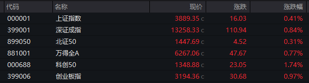 A股:沪指涨0.41%,深成指涨0.84%,创业板指涨0.97%。