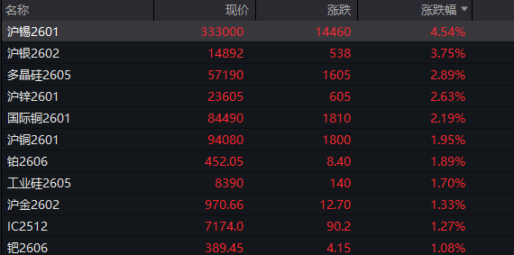 国内商品期市收盘涨跌参半,沪锡涨4.54%,沪银涨3.75%,集运指数(欧线)涨0.32%,焦煤跌4.33%,玻璃跌2.71%。