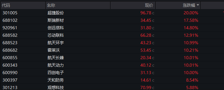 商业航天概念反复活跃,华菱线缆、中超控股2连板,东方通信、长城电工涨停,超捷股份、创远信科、天力复合等跟涨。