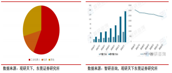 图表6:2023年谐波减速器下游应用占比(%)(左)中国谐波减速器供需情况及价格走势(万台,元/台)