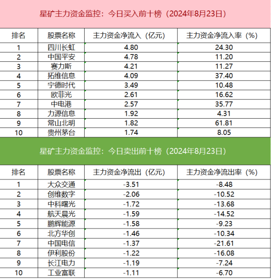 从个股主力资金监控数据来看,主力资金净流入前十的个股中华为概念股较多,四川长虹净流入居首。