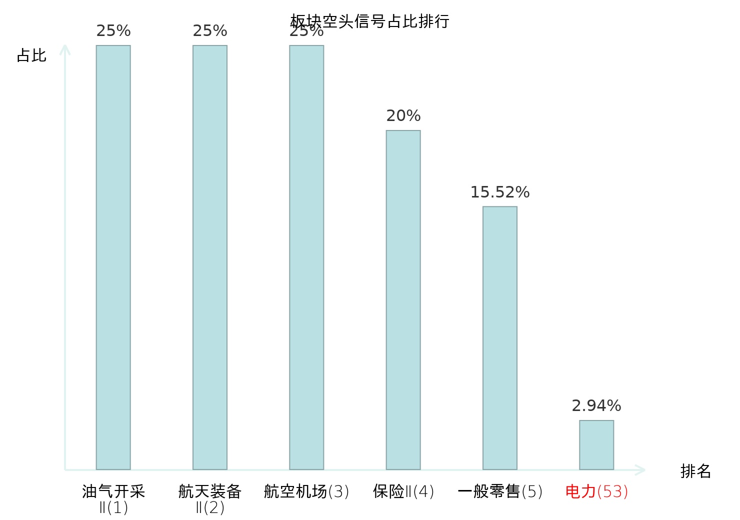 全市场所有行业板块中主力空头信号占比排名中,油气开采Ⅱ板块位居第一。航空装备Ⅱ板块名次提升最快,较昨日上升121位。