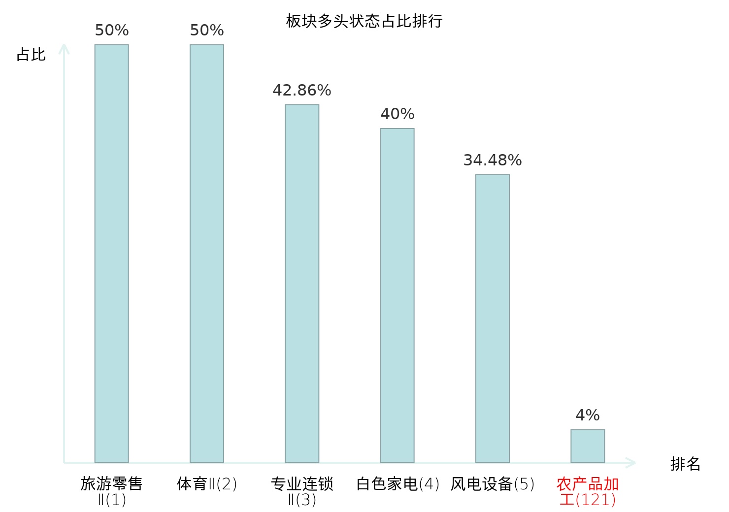 全市场所有行业板块中主力多头状态占比排名中,旅游零售Ⅱ板块位居第一。能源金属板块名次提升最快,较昨日上升50位。