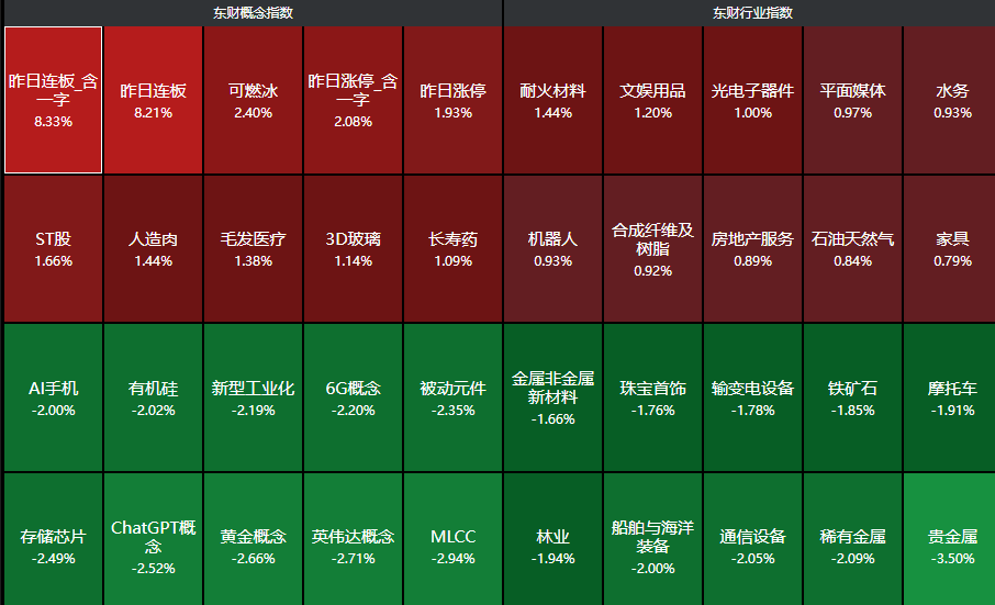 上证报中国证券网讯 10月22日,市场震荡回落,截至午间收盘,沪指跌0.44%,深证成指跌0.81%,创业板指跌0.89%。盘面上看,深地经济概念股表现强势,神开股份、石化机械走出3连板。人造肉概念股持续活跃,双塔食品涨停。机器人概念股震荡拉升,中信重工、睿能科技、南方路机等涨停。下跌方面,黄金概念股集体回调,湖南白银跌逾8%。通信设备、林业等板块跌幅靠前。