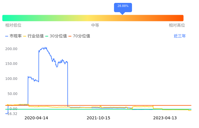 ST广田当前市现率为-1.13,在所属的装修装饰中,市现率排10,前5名分别为、维业股份市现率1.23、德才股份市现率4.42、郑中设计市现率6.70、*ST奇信市现率6.88、中天精装市现率10.66。ST广田当前市现率为-1.13,超过近3年28.88%的历史数据。