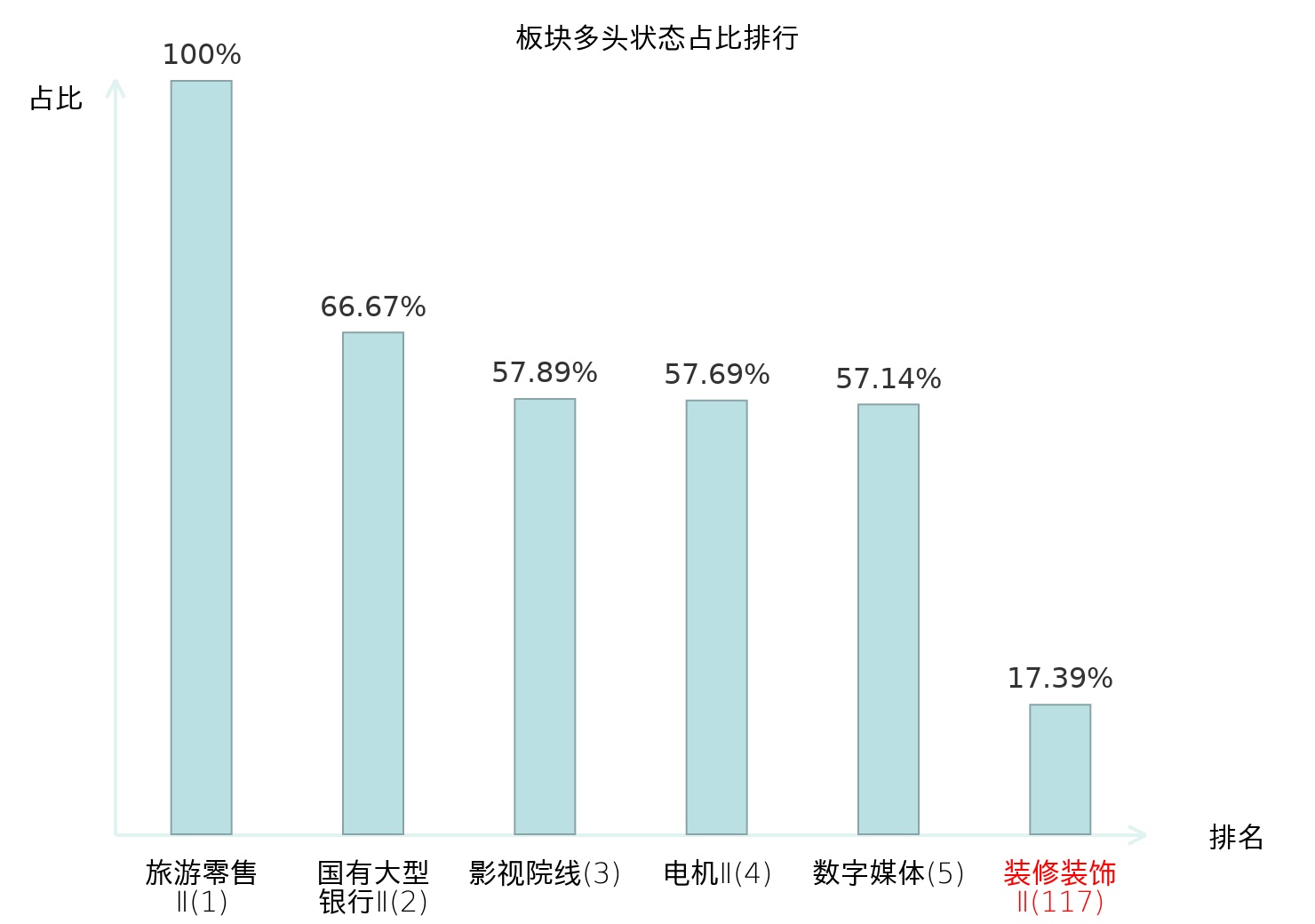 全市场所有行业板块中主力多头状态占比排名中,旅游零售Ⅱ板块位居第一。专业连锁Ⅱ板块名次提升最快,较昨日上升56位。