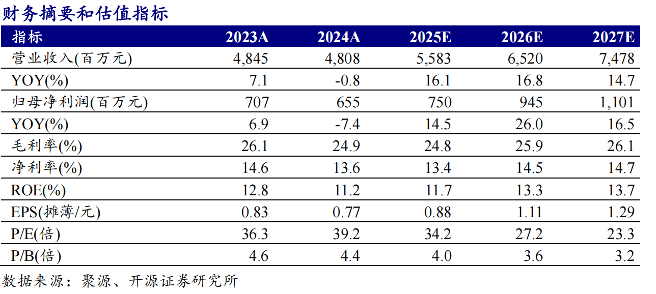 公司发布2025年三季度报告。(1)前三季度,公司实现营收41.17亿元,同比+16.34%;归母净利润5.35亿元,同比+8.19%;扣非归母净利润5.17亿元,同比+12.64%;销售毛利率24.50%,同比-0.54pcts;销售净利率13.05%,同比-1.06pcts。(2)单三季度公司实现营收14.23亿元,同比+21.12%,环比-7.34%;归母净利润1.76亿元,同比+20.01%,环比-14.59%;扣非归母净利润1.73亿元,同比+20.78%,环比-16.64%;毛利率23.69%,同比-1.58pcts,环比-1.70pcts;净利率12.34%,同比-0.23pcts,环比-1.24pcts。(3)公司前三季度收入和利润均实现了较好增长,单三季度利润率水平同环比均略有下降,预计主要与产品收入结构变化等因素有关。