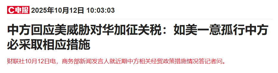 再而这一次的关税提升更多的是为即将到来的10月底的会面谈判增加筹码,特朗普惯用手段,虚张声势。