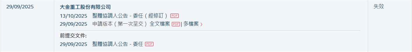 新股消息 | 大金重工(002487.SZ)港股IPO招股书失效