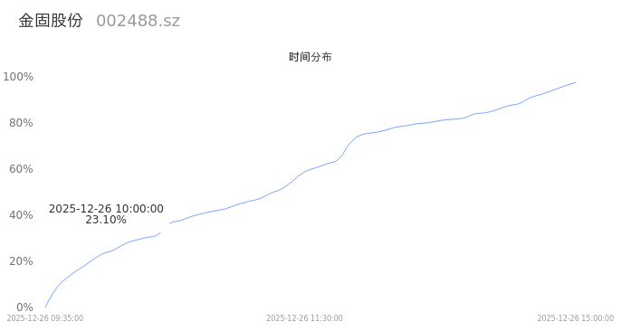 002488金固股份2025年12月26日成交65.47万手,成交金额5.75亿,相较昨日放量15.06万手,换手率7.12%,成交清淡。