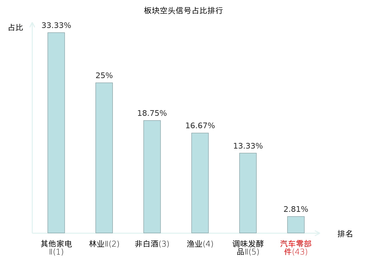 全市场所有行业板块中主力空头信号占比排名中,其他家电Ⅱ板块位居第一。工程机械板块名次提升最快,较昨日上升106位。