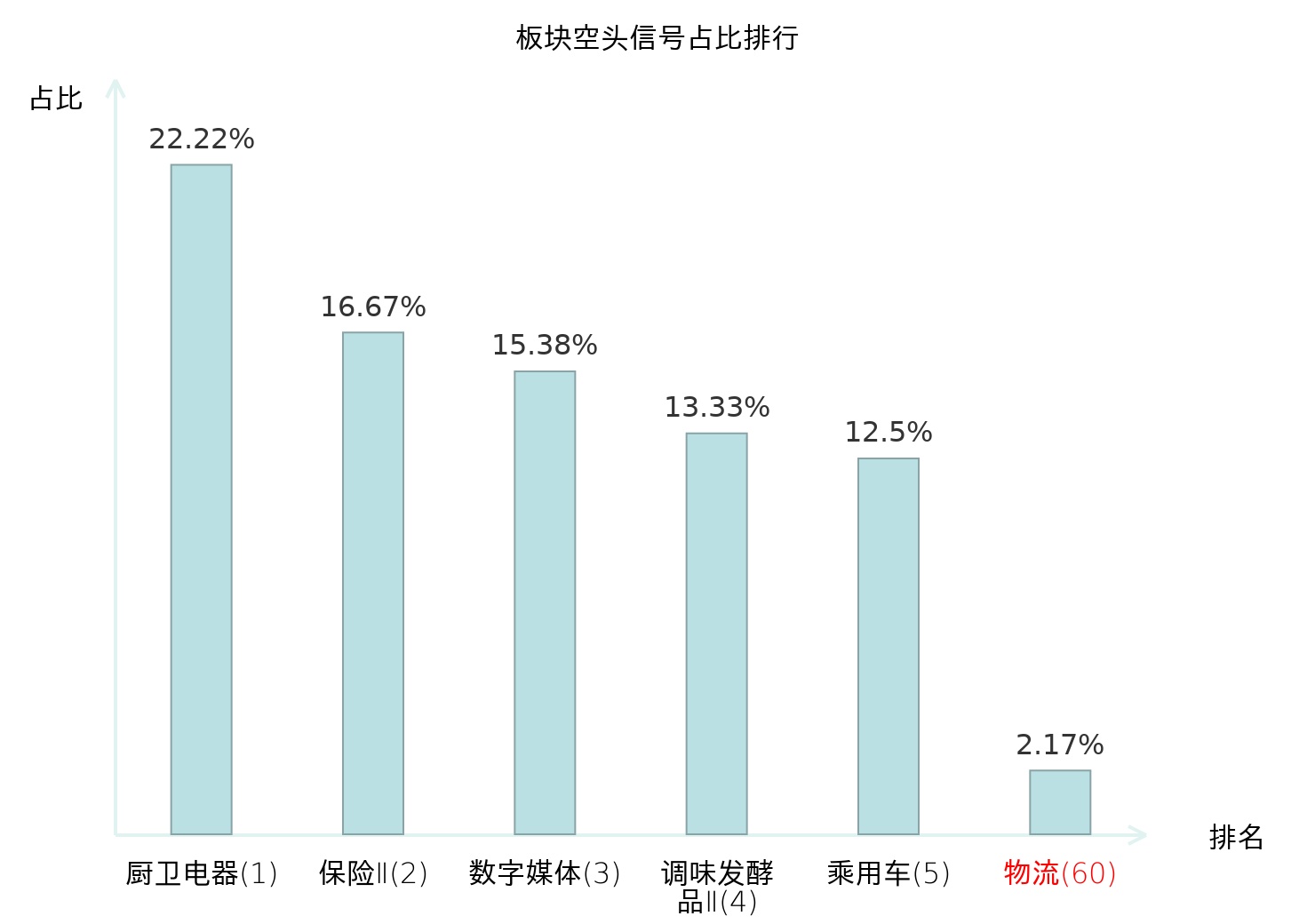 全市场所有行业板块中主力空头信号占比排名中,厨卫电器板块位居第一。教育板块名次提升最快,较昨日上升105位。