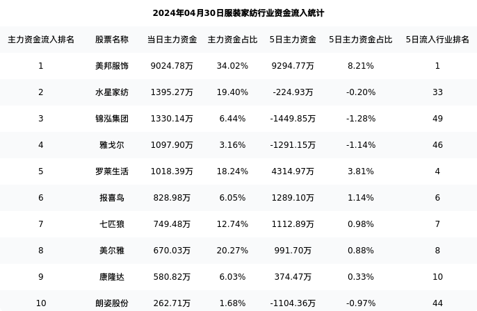 从主力资金流向来看,服装家纺行业今日主力资金流入12.09亿元,在所有申万二级行业中排名:22/131。