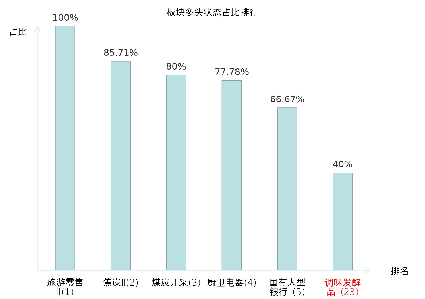全市场所有行业板块中主力多头状态占比排名中,旅游零售Ⅱ板块位居第一。渔业板块名次提升最快,较昨日上升66位。