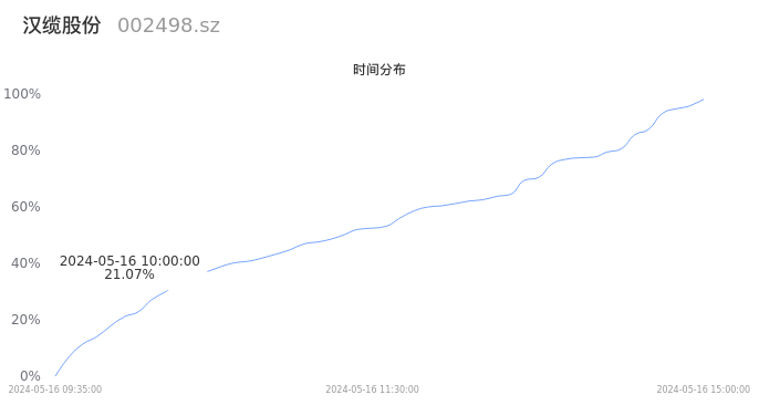 002498汉缆股份2024年05月16日成交14.31万手,成交金额5486.05万元,相较昨日缩量5916手,换手率0.43%,成交清淡。