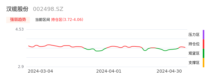 04月30日,汉缆股份收报3.74,股价涨幅-0.53%,成交金额6523.46万元,换手率0.52%。