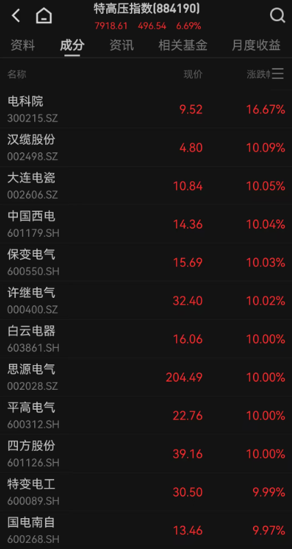 特高压概念强势上涨