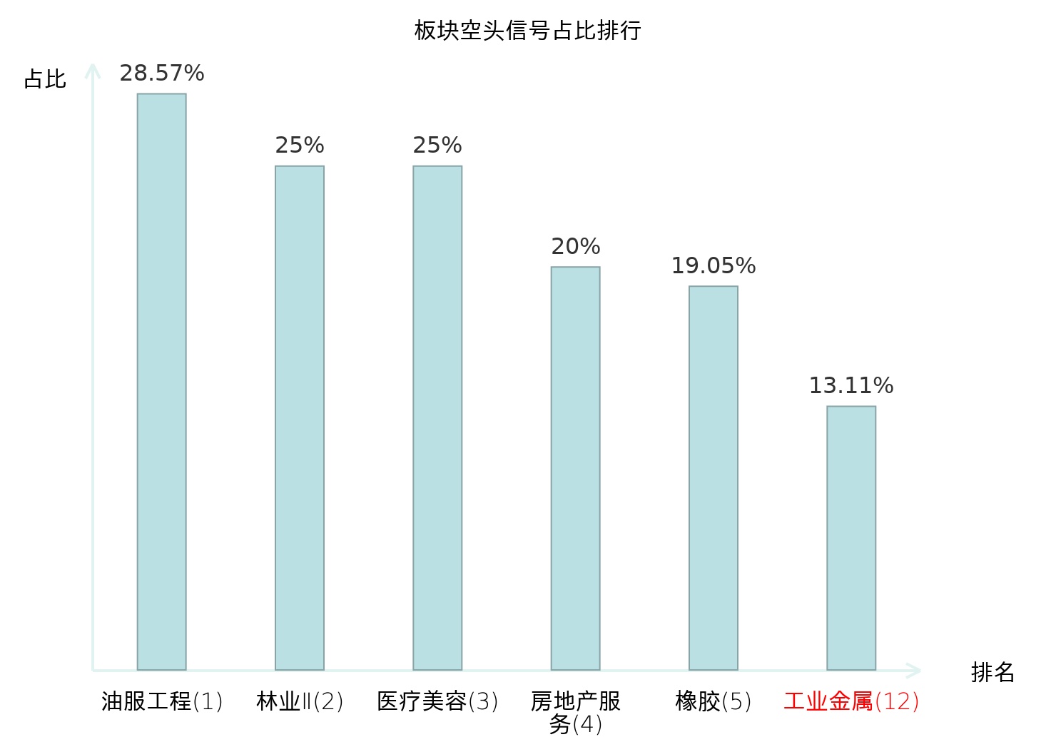 全市场所有行业板块中主力空头信号占比排名中,油服工程板块位居第一。炼化及贸易板块名次提升最快,较昨日上升102位。