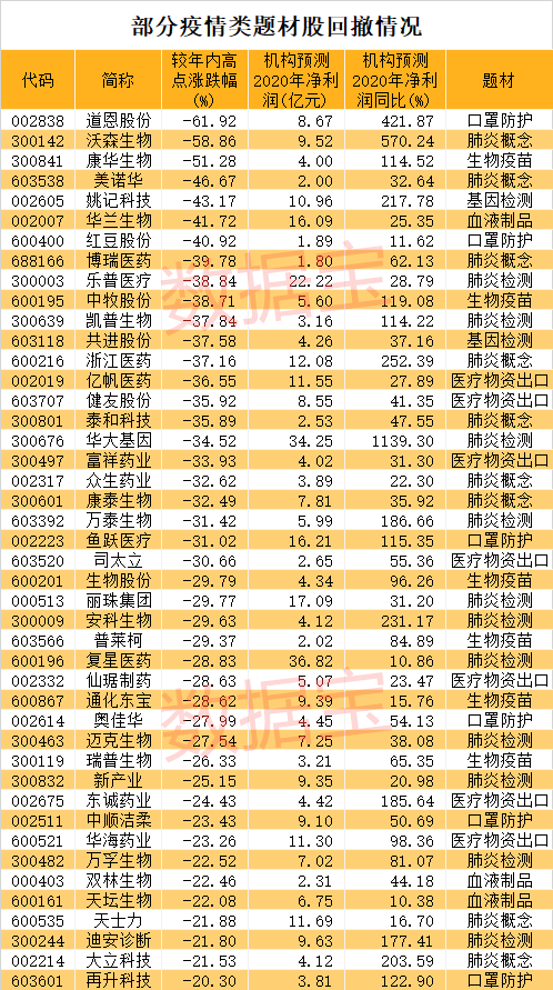 在上述64股中,昨日收盘价与年内高点相比,23股已回撤30%以上,其中道恩股份、沃森生物、康华生物等3股回撤幅度均超50%。