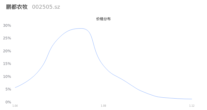 然后我们来看下当日成交的价格分布。经过分析发现,该股票当日成交价格波动低于10个最小波动价位,由于可以参考的样本量非常少,价格分布分析的结果不具有指导意义,下图仅供参考。