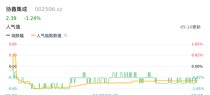 05月10日,协鑫集成收报2.39,股价涨幅-1.24%,成交金额1.02亿元,换手率0.73%。