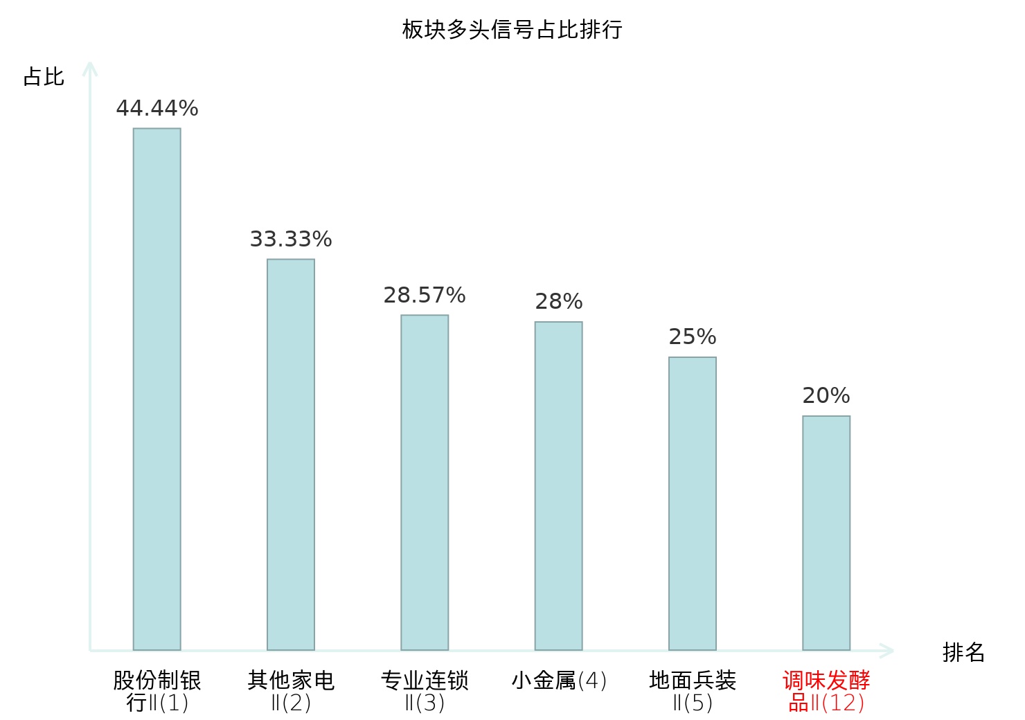 全市场所有行业板块中主力多头信号占比排名中,股份制银行Ⅱ板块位居第一。其他家电Ⅱ板块名次提升最快,较昨日上升127位。