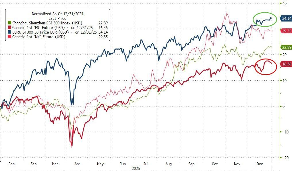 亚洲市场中,韩国(+79%)和日本(+29%)表现优异,特别是那些与AI、先进制造及国防战略挂钩的资产,为投资者提供了宝贵的凸性回报。